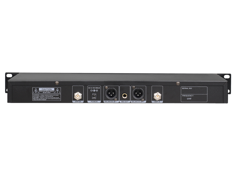 9. ID加密加导外置双BNC外接天线,使接收信号稳定度更强,主机支持一路6.35mm混合输出和两路平衡输出。